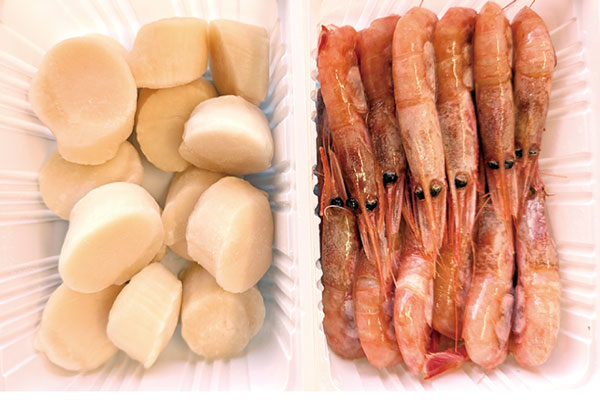 甘えびとぷりぷり肉厚で甘みたっぷりの北海道産ほたてをお刺身で。